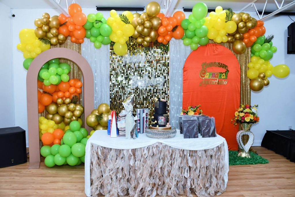 Personalize the hall with balloons, lighting, centerpieces, and custom backdrops.